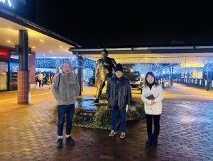 礼拝後、キャロリングに行きました。直方駅では直方教会の鈴木牧師とお父様(牧師)も一緒に歌いました。